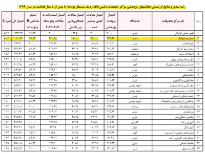 احتراما ضمن تبریک پیشاپیش سال نو و آرزوی موفقیت به استحضار می رساند که با افتخار مرکز تحقیقات سندرم متابولیک طبق رتبه بندی و نتایج ارزشیابی فعالیتهای پژوهشی مراکز تحقیقات بالینی فاقد ردیف مستقل بودجه با بیش از 5 سال فعالیت در سال 1399 رتبه دوم کشور را کسب نموده است .